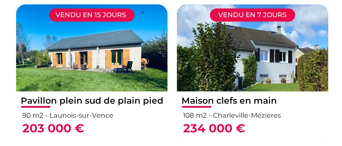 Grâce à notre méthode éprouvée : annonce co-construite + diffusion massive + base de +800 acheteurs actifs. On mise sur la qualité et l'efficacité plutôt que l'attente.